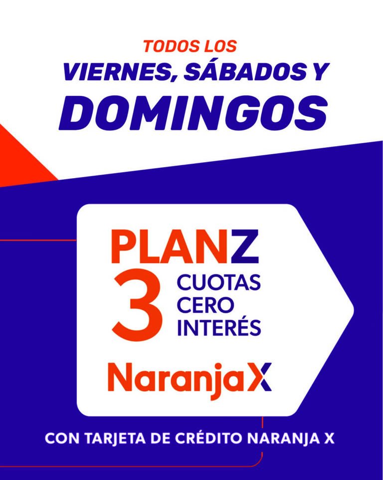 TODOS LOS VIERNES, SABADOS Y DOMINGOS PODES ABONAR TU COMPRA CON TARJETA DE CRÉDITO EN 3 CUOTAS SIN INTERÉS SI SOS USUARIO DE TARJETA NARANJA !!